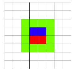 In the first example the field looks as follows (the first rectangle is red, the second rectangle is blue, green shows the marked squares):
