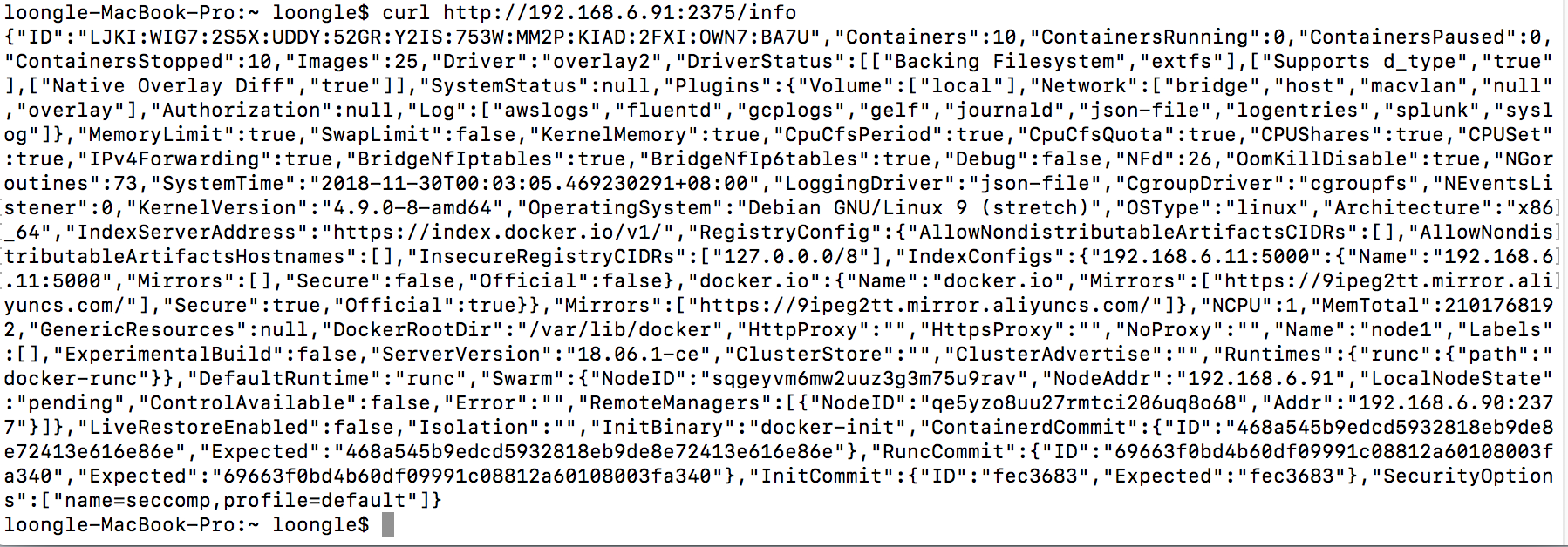 $ curl http://your ip:2375/info