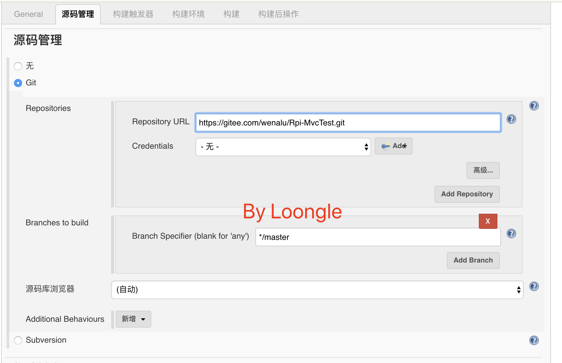 2.设置源码地址,为了方便各位读者,笔者已经新建一个项目代码仓,读者可以直接使用这个仓,快速跑一遍流程。git 地址:https://gitee.com/wenalu/Rpi-MvcTest.git