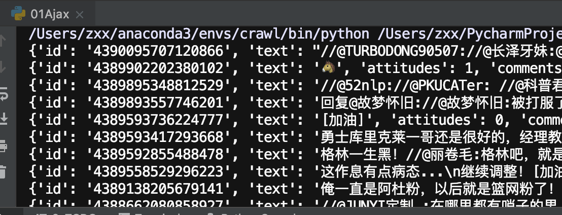 weibo['text'] = pq(item.get('text')).text() # 这里面的文字内容又进行了一层解析,将正文里面的html标签去掉