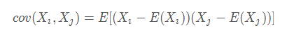 在统计学上,协方差用来刻画两个随机变量之间的相关性,反映的是变量之间的二阶统计特性。考虑两个随机变量Xi 和 Xj ,它们的协方差定义为: