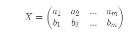 假设有m个变量,特征维度为2,a1表示变量1的a特征。那么构成的数据集矩阵为: