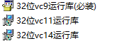 安装缺少的【系统没有安装VC11、VC14运行库,注意时X86 32位!】运行库: