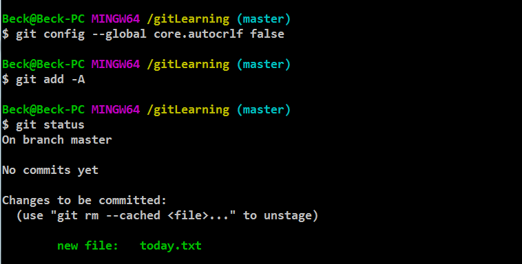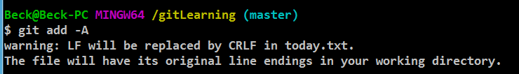 警告:today.txt(我要添加的文件名)中LF被CRLF替换