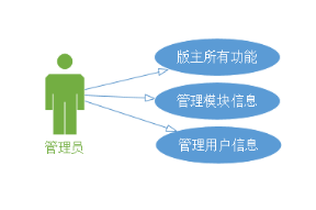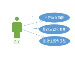 论坛用户一共有3种权限,分别是普通用户、版主以及管理员。下面就来分析这3个角色所对应的用例图。