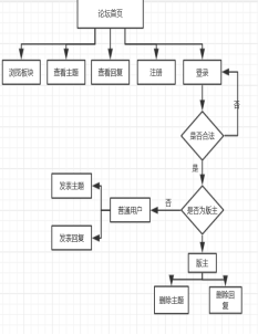 企业论坛系统包括前台和后台两个部门,这里需要分别为其绘制流程图。下面首先来系统后台的流程图,其流程图如图