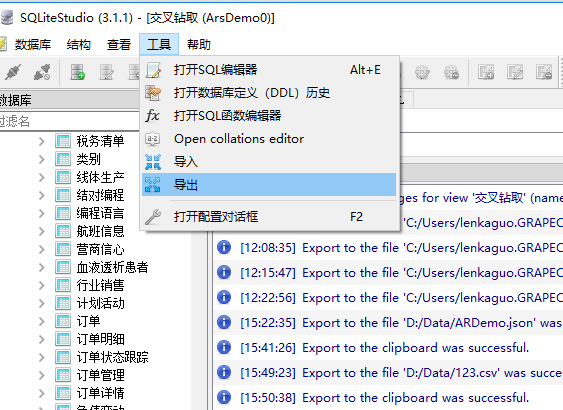 就想到一个妙招,为何不将数据查询的结果导出 json呢, 我用sqlite 的导出工具,将数据查询导出 Json 文件,