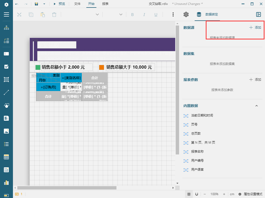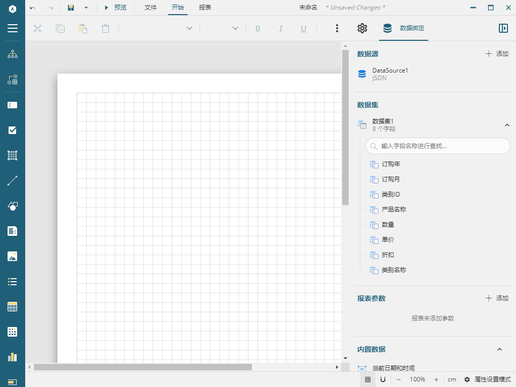导出json 数据完成后,我就迫不及待,打开 ActiveReports JS 的Electron Designer 去设计报表了。