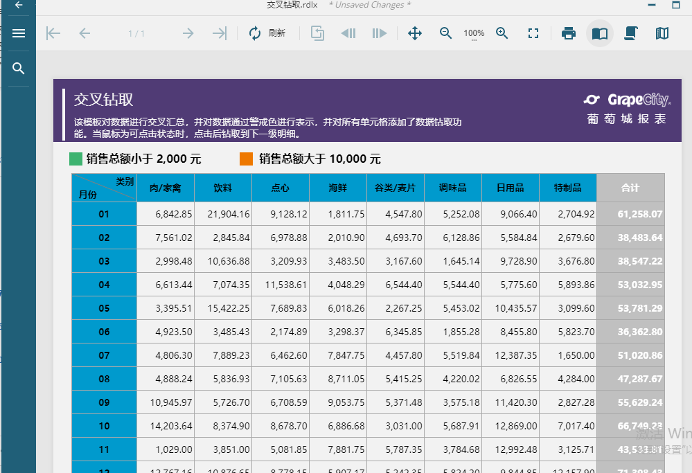 绑定数据成功后,就可以预览啦,嗖的一下一切正常,看来 ActiveReports NET 可以顺利迁移到 ActiveReports JS,只要处理好数据源,模板还是可以继续复用的,可以节省设计模板的时间了。