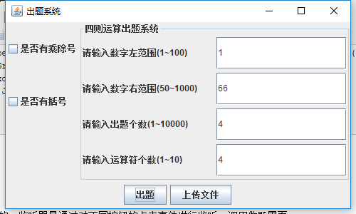 它是通过按钮“出题”监听器来实现的,监听器是通过对不同按钮的点击事件进行监听,调用做题界面。