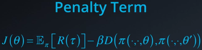 另一个添加这种限制条件的方式是向目标函数添加惩罚项,即该差异的某个乘数。如果我们尝试优化这个组合的目标函数,那么我们将能够获得更好的策略,但是在每一步差别并不是很大,这样可以使学习算法很稳定,有点像对机器学习算法进行正则化。