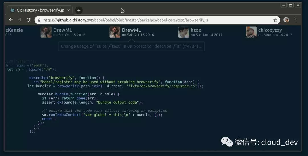这个可以很酷炫地展示 GitHub 中,任意一个文件的历史修改情况,看图为证。