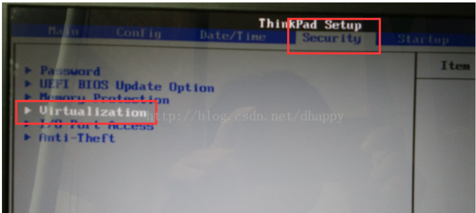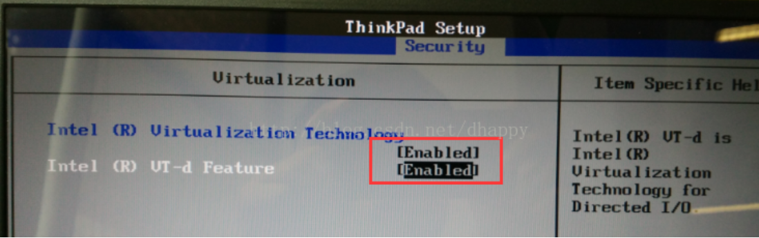 2.1.2、改Bioss的设置(进入security下的virtualization,然后将图中的两项都改为Enabled),如下图: