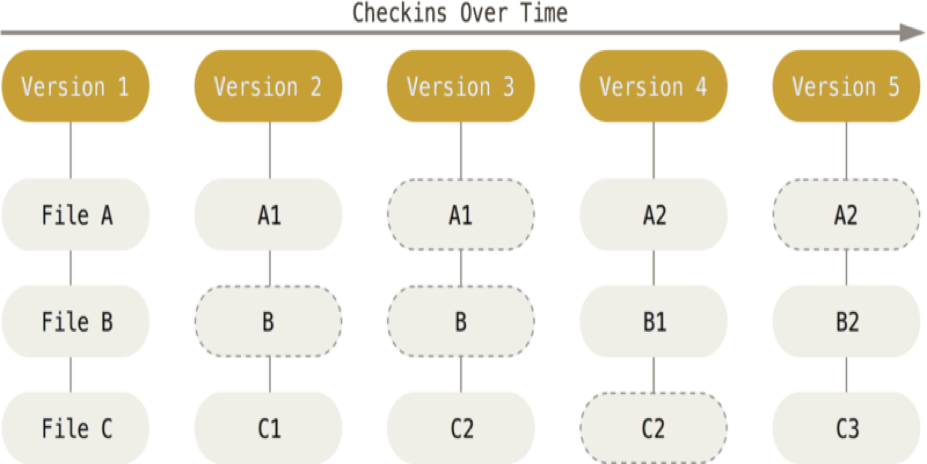 GIT和SVN的区别:SVN等其他传统版本管理工具保存的是每个版本的变化