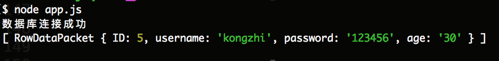然后我们在命令行中,运行 node app.js 后,可以看到如下所示: