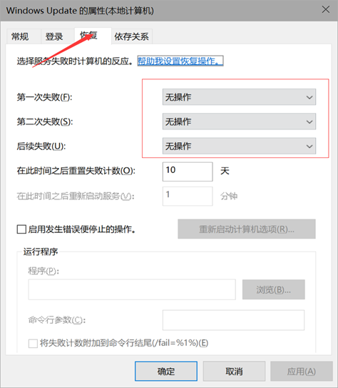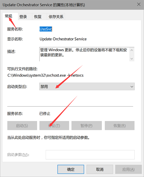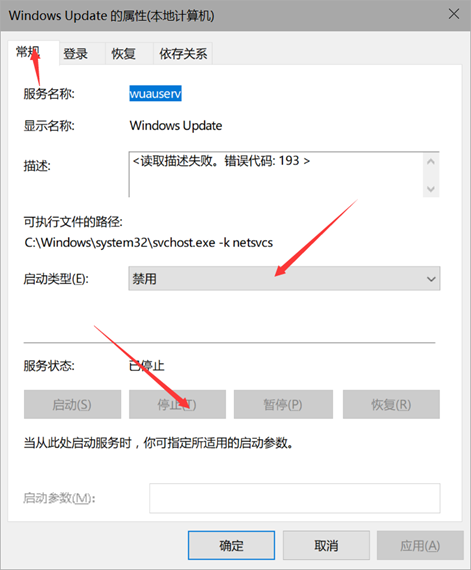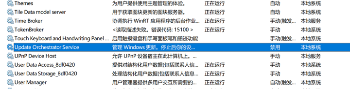 在服务-windows update 上右键-属性,在登录一栏,选择'此账户',然后随便设置一个不存在的账户及密码,使服务以错误的方式登录,