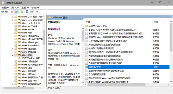 计算机配置-管理模版-Windows组件-Windows更新,在"配置自动更新"一栏右键编辑,