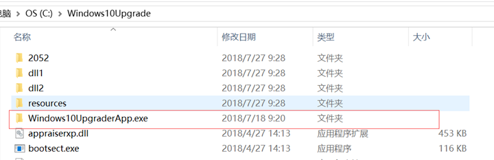 2. 删除该文件内的Windows10UpgradeApp.exe,若提示被占用,先从任务管理器结束"windows10易升"程序,再进行删除。