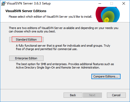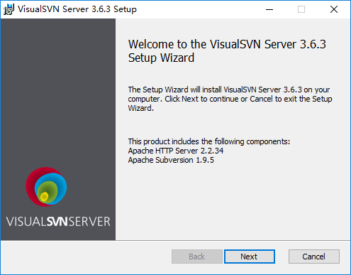 1.我们先安装:VisualSVN-Server-3.6.3-x64.msi
