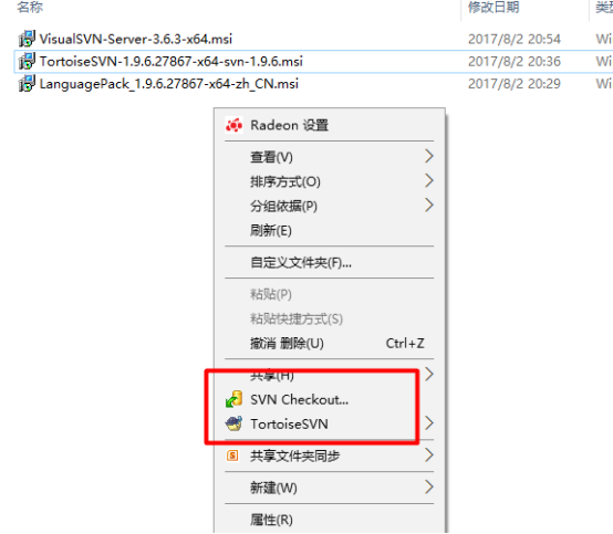 2.安装:TortoiseSVN-1.9.6.27867-x64-svn-1.9.6.msi(svn客户端),这个比较简单,一直next 就行