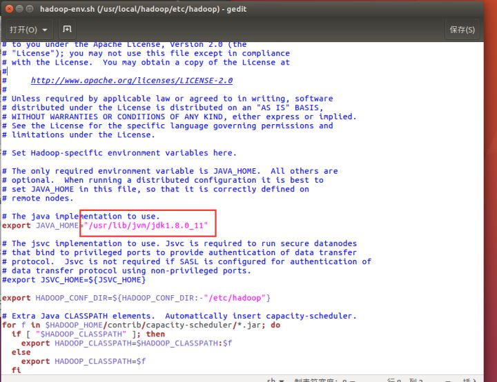 先说hadoop-env.sh这个文件,为什么是可能呢?因为如果每一台机子的JDK路径不同的话需要在文件中加入JDK路径: