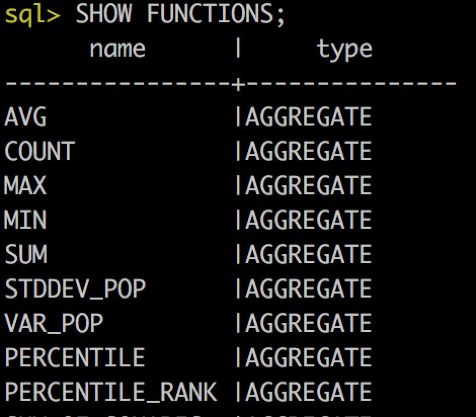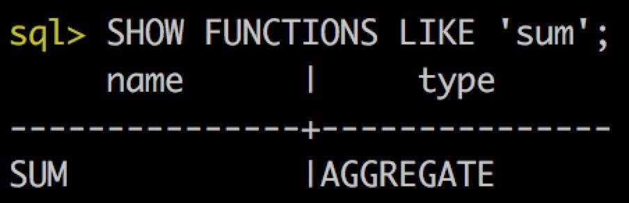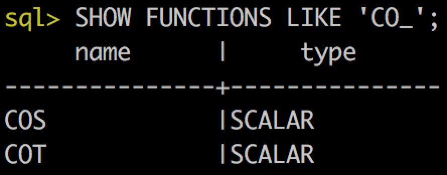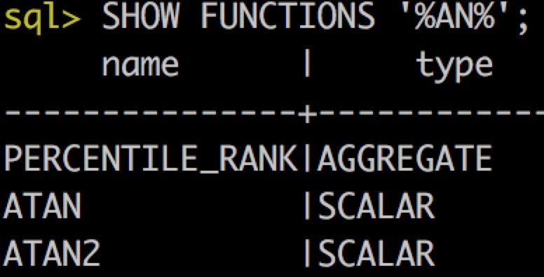 *查看函数:“SHOW FUNCTIONS [ LIKE? pattern? ]?”
