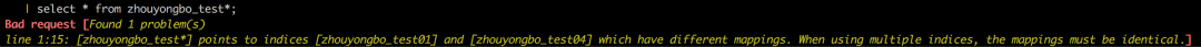 注意被查询索引必须有相同的mapping,否则会有如下报错: