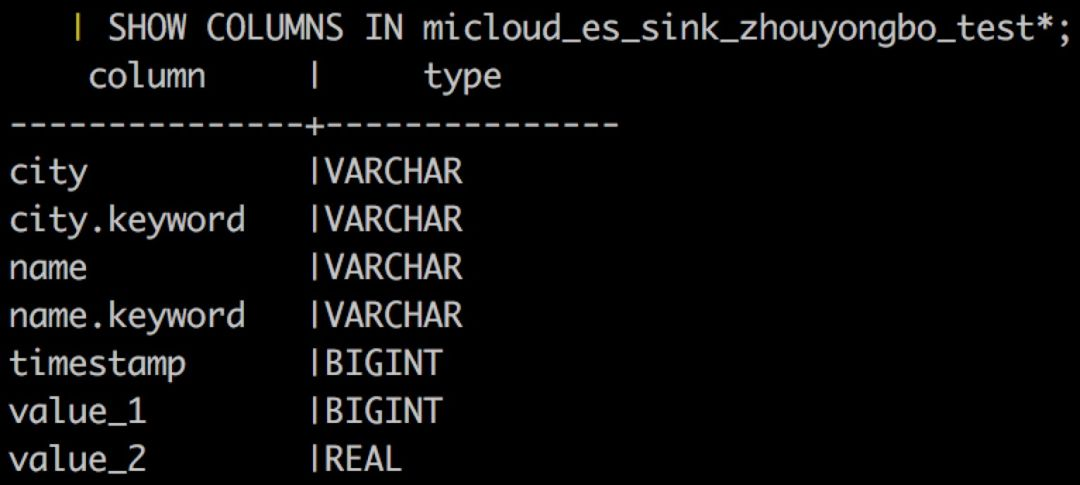 SELECT * FROM micloud_es_sink_zhouyongbo_test* where city=‘北京' and value_1=8 ORDER BY value_1 desc ;