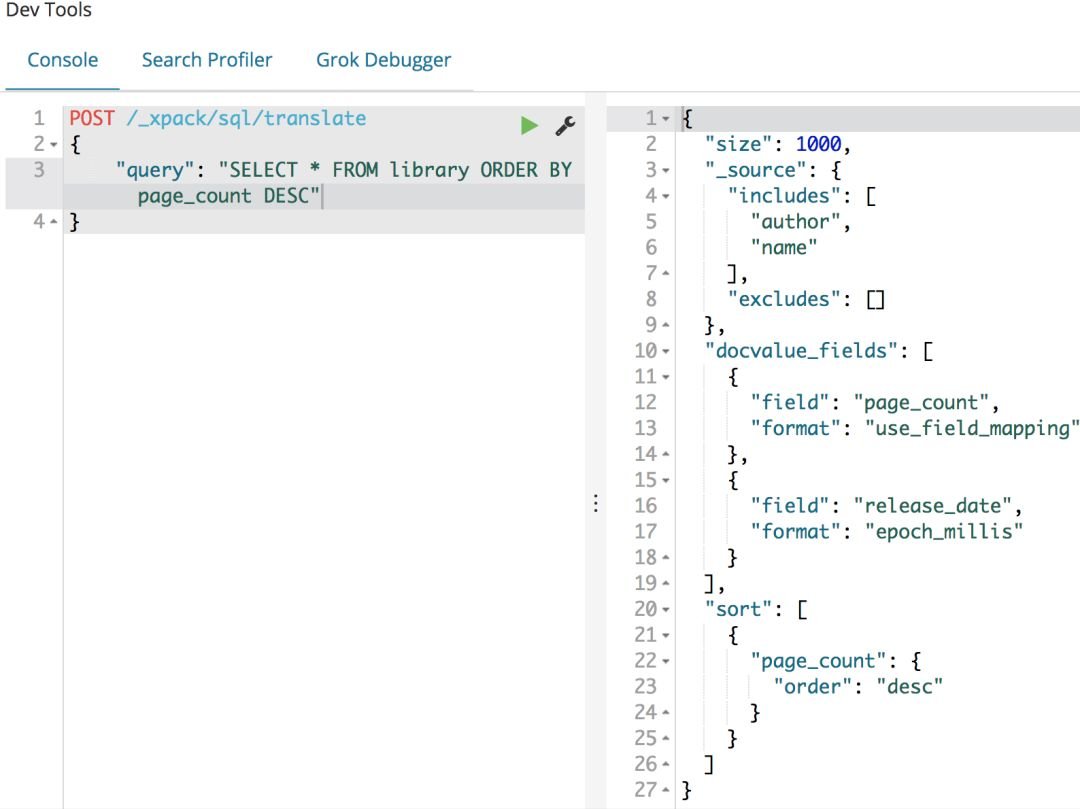 6.3+ Elasticsearch SQL有个非常实用的功能,就是可以用translate api把SQL语句翻译成ES DSL语句,对于学习DSL感到头痛的同学有福啦。