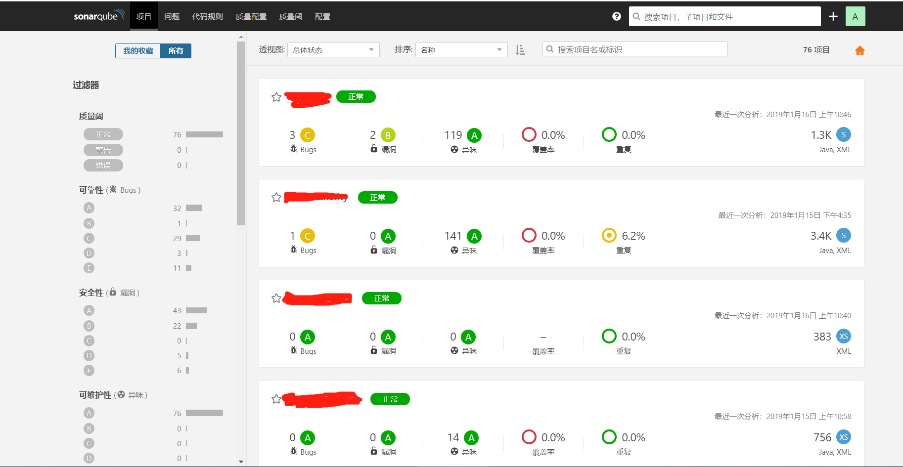 到sonar服务端项目列表查看结果