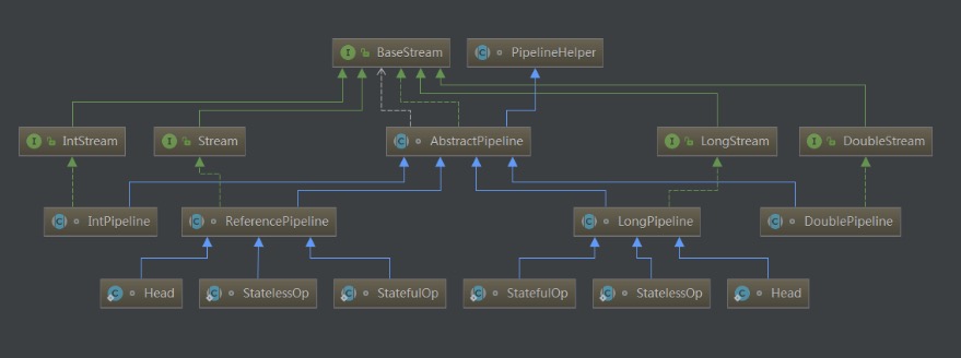 其中,BaseStream定义了Stream的基本接口,Stream中定义了map、filter、flatMap等常用操作。IntStream、LongStream、DoubleStream是针对基本类型提供了便捷和特化操作。以上接口构建了Java8中流体系的根基。AbstractPipeline是流水线(Pipeline)的核心抽象类,用于构建和管理流水线。