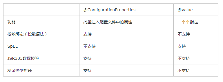 @ConfigurationProperties和@value的区别