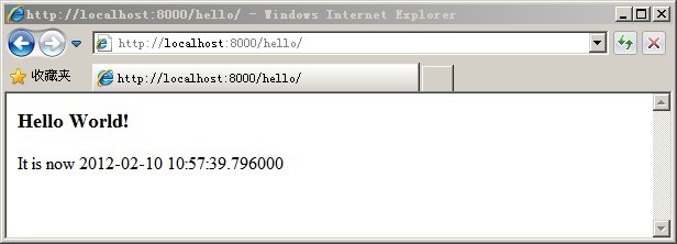 最后我们打开浏览器在地址栏里输入地址 http://localhost:8000/hello/,结果显示 如图10