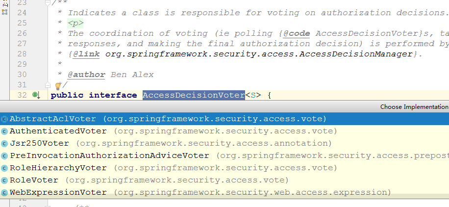 AccessDecisionVoter是投票器,在授权的时通过投票的方式来决定用户是否可以访问,这里涉及到投票规则。