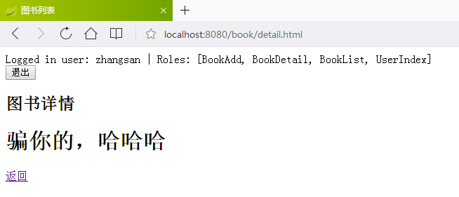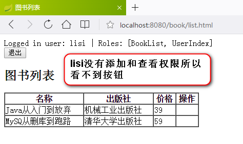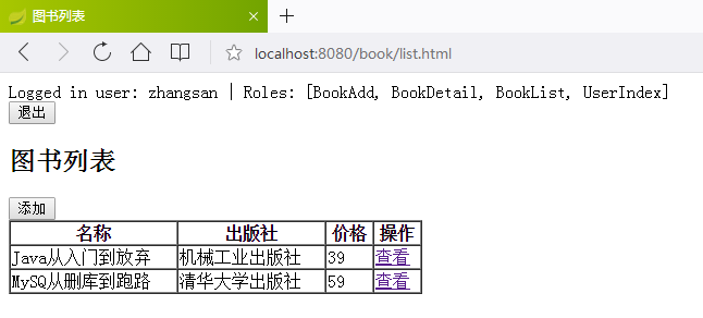 <td><span sec:authorize="hasAuthority('BookDetail')"><a href="/book/detail.html">查看</a></span></td>