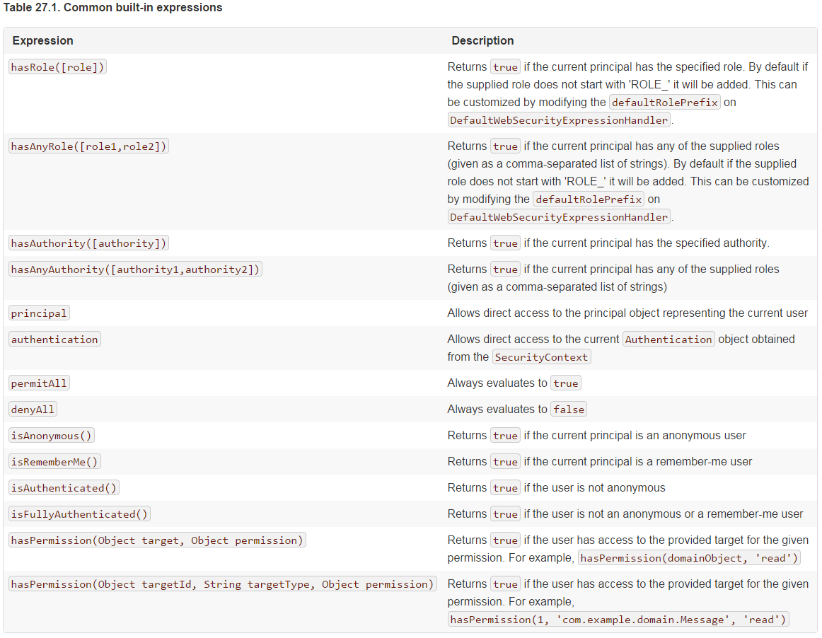 https://docs.spring.io/spring-security/site/docs/5.0.5.RELEASE/reference/htmlsingle/#el-pre-post-annotations