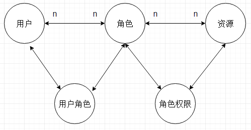 如图,是一种通用的用户权限模型。一般情况下会有5张表,分别是:用户表,角色表,权限表,用户角色关系表,角色权限对应表。