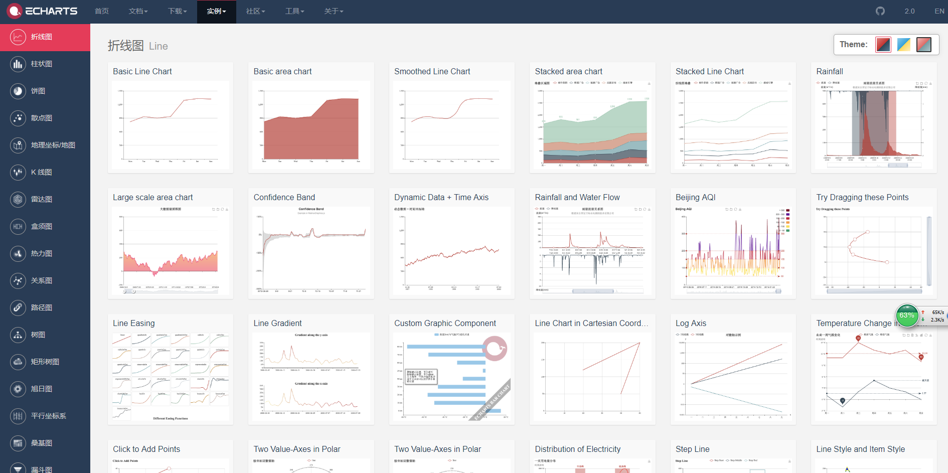 第一点:省略处为绘制图表的代码,首先,你打开Echarts官网,找到实例,选取你项目里面需要用到的图表模板(样式差不多就行,下文会教你如何修改图表样式),点进去,然后你可以看到左侧的代码,把option = {}括号里面的内容放置到我上方省略的代码处,运行,你页面即可以看到你所需要的图表;