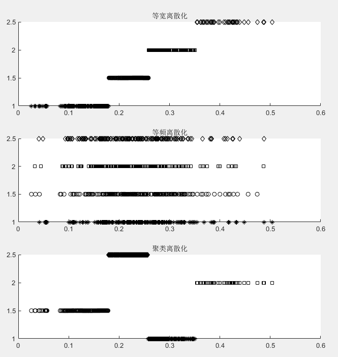 聚类分析的离散化方法也需要用户指定簇的个数,从而决定产生的区间数。