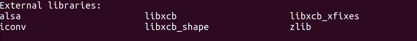 安装完成后,可以查看下 /usr/include 目录下是否含有对应的 SDL2 的库,确认安装过程成功,若上述目录不存在,在后续的编译过程可能会产生报错 "fatal error: SDL.h: No such file or directory" 。完成上述配置后,再进行 ./configure ,就可以在 External libraries 字段中发现对应的 sdl2 字段,对应的 Programs 字段下也会有 ffplay 了。