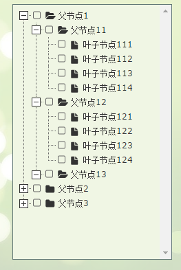{ id: 124, pId: 12, name: "叶子节点124" },