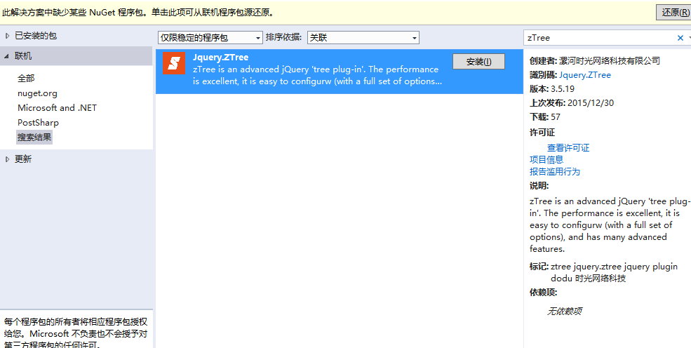 此组件可直接通过Nuget去添加。