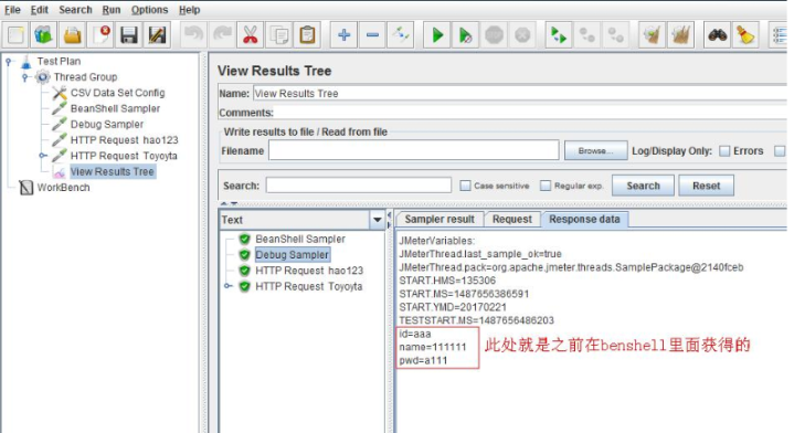 下面是使用CSV Data Set Config参数化将csv里面的数据读取,