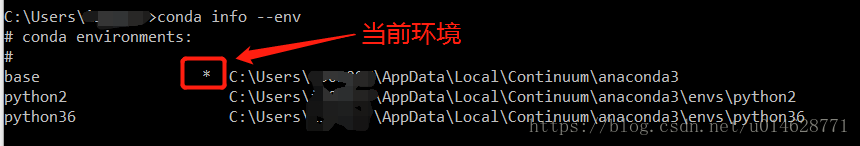 conda info --env可以看到所有python环境,前面有个‘*’的代表当前环境: