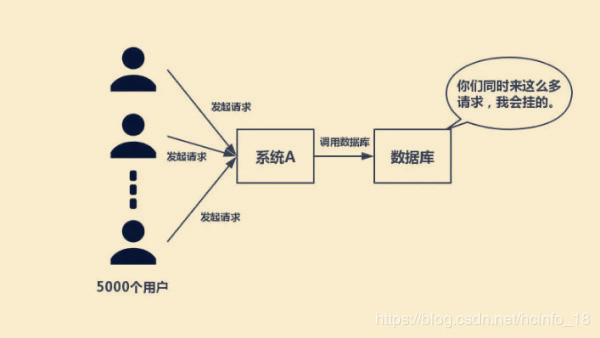 如下图所示,在大并发的情况下,所有的请求直接访问数据库,数据库会出现连接异常。