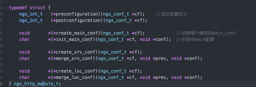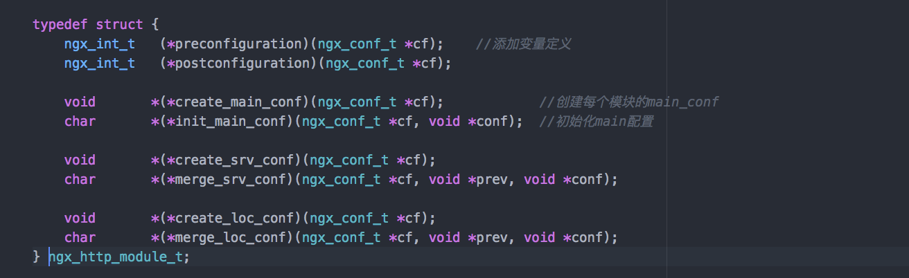 它内部有这个 HTTP 模块定义的,在各个层级(http,server,location)所需要加载回调的方法。