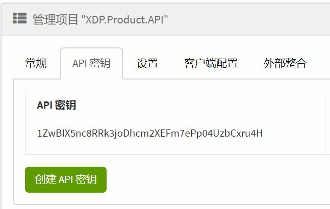 (3)创建一些示例项目,如“XDP.Product.API”,并获取API Key