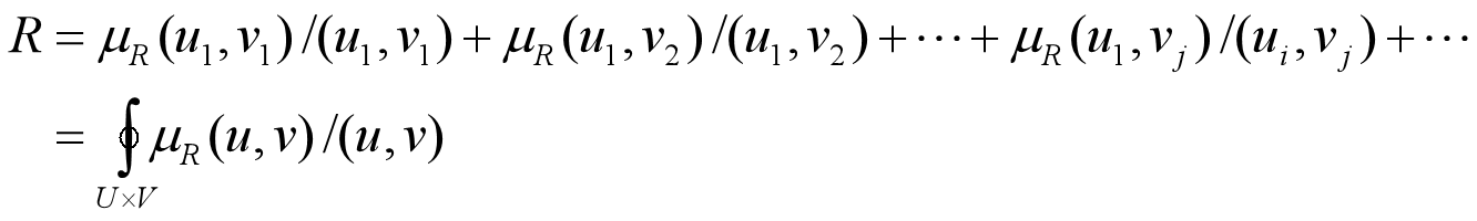 其中A、B是两个语言值。那么,按Zadeh的观点, A、B可表示为两个模糊集(我们仍以A、B标记);这个规则表示了A、B之间的一种模糊关系R,R也可以表示为一个模糊集。于是, 有