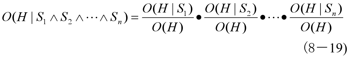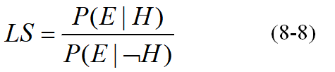 其中C(B|A)表示规则的结论B在前提A为真的情况下为真的信度。 例如, 对上节中给出的两个不确定性命题, 若采用(8-1)式, 则可表示为