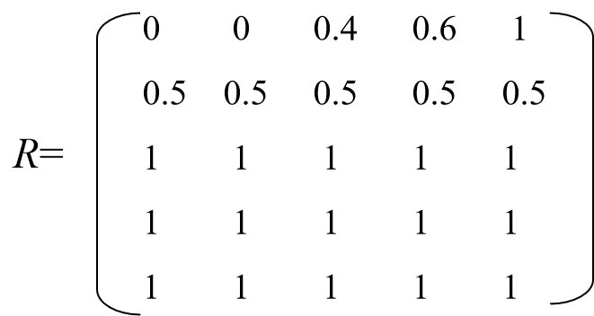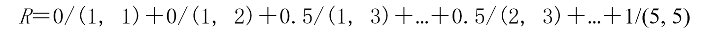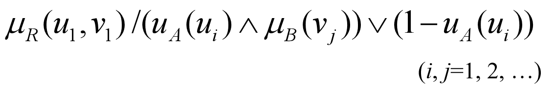 其中U、V分别为模糊集合A、B所属的论域,μR(ui,vj) (i, j=1, 2, …)是元素(ui, vj) 对于R的隶属度。